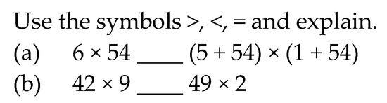 The first “application task” (AT1) is shown in Figure 2. The task intends to engage students in comparing mathematical expressions in different forms (e.g., varying the place of addition and multiplication symbols, the place of digits). The first set of expressions intends to explore whether students understand the distributive property, and whether they would consider the expression (5 + 54) × (1 + 54) as equivalent to 6 × 54. The second set of expressions intends to investigate whether students would inappropriately apply the commutative property by ignoring the place value of numbers. Students are asked to explain their rationale in order to provide further insight into their thinking.