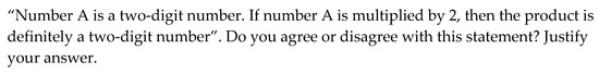 In generation and reflection tasks, students are expected to reflect on mathematical ideas and generate arguments, justifications, strategies, and models. In such a task, “it requires a process of stepping back and reflection on the information being connected” [43] (p. 5). Students need to decide not only how to adjust the mathematical ideas to the format of the task, but also how to make sense of the structure of mathematics.