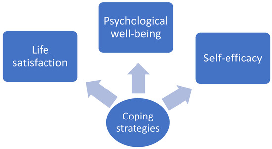 4.5. Associations between Coping Strategies and Life Satisfaction, Self-Efficacy, and Well-Being