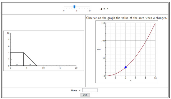 - They included different forms of algebraic thinking, in particular, considering Kaput’s framework [30], the syntactically guided manipulation of formalisms (when students were finding the formulas expressing the area of some figures), and the study of functions, relations, and joint variation (when the requests shifted to observe the growth of the area and display the function representing it).