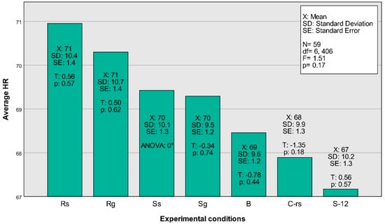Average HR displayed by experimental condition. (* The ANOVA in SS was zero due to its calculated redundancy for the constant term in the model).