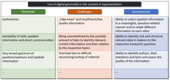 Potentials, challenges & competences for the use of digital geomedia in the context of argumentation, own figure.