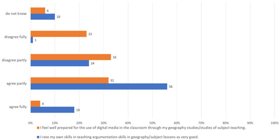 A total of 86% of the respondents also agreed with the statement “Argumentation should have a high significance in the study of geography/subject matter education”. Consequently, lecturers as well as students attach great importance to the use of digital geomedia and argumentation and strongly agree in this area. The situation was different regarding the question in the following chapter.