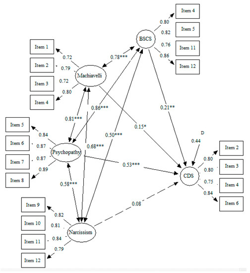 - Furnham, A.; Richards, S.C.; Paulhus, D.L. The Dark Triad of personality: A 10 year review. Soc. Pers. Psychol. Compass 2013, 7, 199–216. [Google Scholar] [CrossRef]