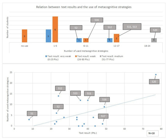 Finally, there was a positive correlation between the use of metacognitive strategies and a better text product. A lack of metacognitive strategies may thus explain students’ poor performance in producing material-based argumentations. Overall, the positive effects of metacognition on students’ classroom performance that have been suggested in the literature [6,22,23] are confirmed in our sub-study.