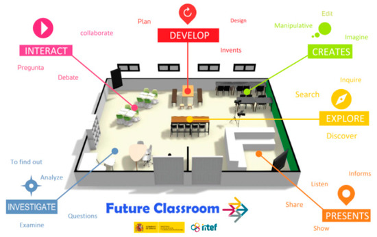 - INTEF. Future Classroom; Ministry of Education and Vocational Training: Madrid, Spain, 2022. Available online: https://intef.es/tecnologia-educativa/aula-de-futuro (accessed on 19 February 2022).