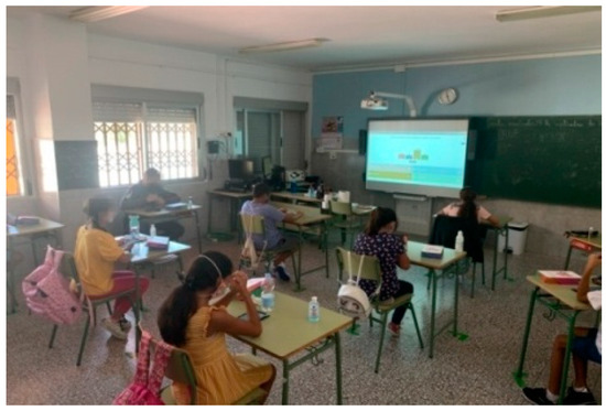 The pandemic situation due to COVID-19 in March 2020 motivated all countries to adopt extreme measures to prevent the spread of the virus. In a few weeks, the educational systems changed and adapted their methodologies to the health regulations [68]; even face-to-face classes were suspended. In the Spanish context, schools resumed face-to-face classes with prevention, hygiene and health promotion measures against COVID-19 imposed by the Spanish Ministry of Education and Health [69]. Among the most outstanding measures was the decrease in student ratio, i.e., no more than 15 students per classroom. The use of masks was also mandatory, and the use of the center’s dependencies, meetings and assemblies between teachers and students was prohibited, and the minimum distance was 1.5 m between the students. They could also not share school supplies. In addition, there were 14-day lockdowns on students in the event they tested COVID+ or had close contact with a positive person.
