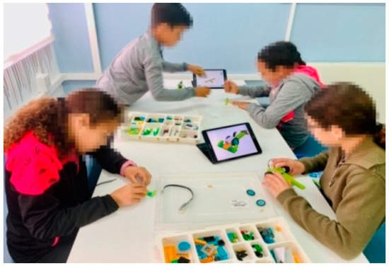 Specifically, during the research process in times of pandemic, the methodologies carried out by both the control and experimental groups were similar to the traditional one due to the restrictions on collaborative work and distancing imposed by the government of Spain (Figure 2). However, the experimental group before the pandemic used active methodologies based on computational thinking and makerspaces (Figure 3), while the control group used a traditional methodology.