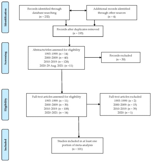 This systematic review with meta-analysis followed the PRISMA statement [12] (see Supplementary Materials Table S1 for the PRISMA checklist corresponding to our review).