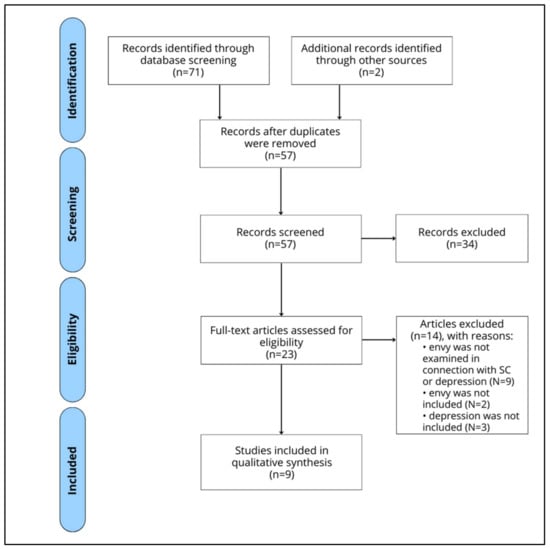 Carraturo, F.; Di Perna, T.; Giannicola, V.; Nacchia, M.A.; Pepe, M.; Muzii, B.; Bottone, M.; Sperandeo, R.; Bochicchio, V.; Maldonato, N.M.; et al. Envy, Social Comparison, and Depression on Social Networking Sites: A Systematic Review. Eur. J. Investig. Health Psychol. Educ. 2023, 13, 364-376. https://doi.org/10.3390/ejihpe13020027
