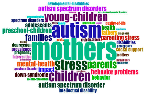 The behavioral characteristics of people with ASDs imply substantive and early changes in the areas of socialization and, therefore, often require extensive care and permanent commitments from families [9,10]. Children and young people with ASD need continuous and timely support from mothers to develop early skills that allow them to socialize and tolerate the uncertainty of a constantly changing world [11]. The advent of a child with ASD can have a significant impact on the family life of mothers and/or responsible caregivers [12]. These parenting idiosyncrasies cause socially responsible mothers of children with ASD to report higher levels of stress [13]. There is a relationship between the problem behaviors of the child and the inclination of the mothers to seek social support, since their role is key to changing the course of the ASD towards a more adaptive trajectory of development [14]. Some studies address the interaction of mothers with their autistic children, highlighting the strengths and weaknesses of the maternal interaction style, as well as the long-term benefits of a positive relationship [15,16,17].