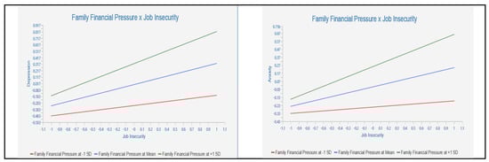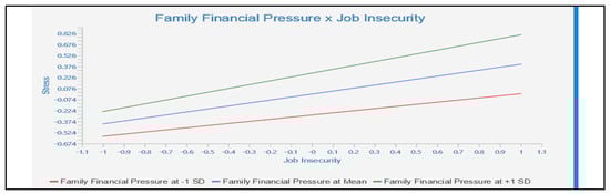 Family financial pressure refers to the perceived financial difficulties that individuals experience as a result of their family responsibilities (e.g., supporting children, elderly parents) []. Research has revealed that family financial pressure is linked with increased psychological distress [,] and that it can moderate the link from job insecurity to mental health results []. The link from job insecurity to mental health consequences has been well established in the literature [,,,,,,,]. However, little research has explored the moderating role of family financial pressures. The main objective of this paper is to investigate the moderating role of family financial pressures on the relationship between job insecurity and depression, anxiety, and stress among tourism employees. It is important for policymakers and employers to consider these interrelationships and develop interventions and policies that can help reduce the adverse effects of health crises on the tourism business and its employees. This can include measures such as financial support for affected employees, job retraining programs and mental health support services. Additionally, it is crucial to observe the tourism industry’s long-term sustainability and develop strategies to help it better withstand future health crises.