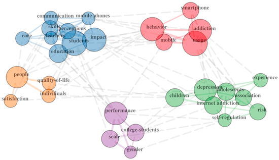 The keyword comparisons between the education and psychology datasets (Table 1) reveal a distinct difference in emphases. Sentiment analysis lexicons can be used to guide descriptions of these emphases. For this discussion, keywords are classified as positive (e.g., satisfaction, skills, care) and negative (e.g., depression, anxiety, addiction) based on the MPQA Subjectivity Lexicon [51,60]. The keywords chosen by the authors for the psychology document overwhelmingly favor the negative consequences of smartphone use. The education keywords also reveal problematic topics but to a far lesser degree.