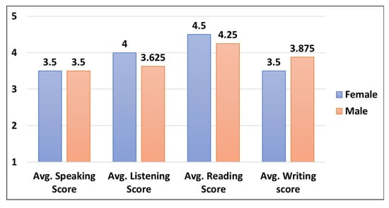 Gender-based participants English language skills level scores.