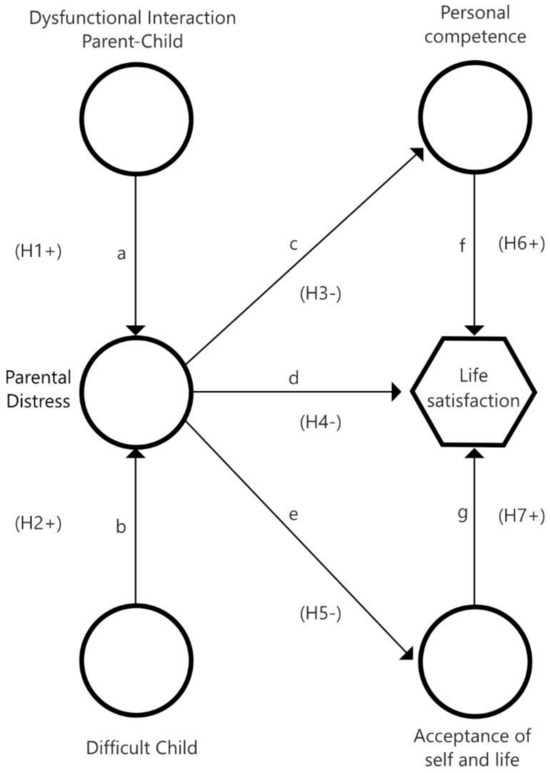 Based on the results obtained, it is perceived that resilient attributes have a mediating effect on parental stress and life satisfaction. In this way, and more specifically, this study determines that there is a positive correlation between the binomial Parental–child dysfunctional interaction and Parental Distress (H1), confirming that the feeling of competence that parents have not only about themselves but also in the care of their children determines the way in which they deal with certain situations that cause them stress [23]. These data are in line with those results in previous research [25] that determine that the feeling of parental competence affects in the same way the ability to assume the responsibilities that this new role implies, where a great influence of three main dimensions prevails: the personal characteristics of the father or the mother, the personal characteristics of the child as well as the characteristics that predominate between the father/mother and the child [25,43]. It can be argued that working with families can improve the resilience and stress-coping of parents with children with temporary or permanent needs [44].