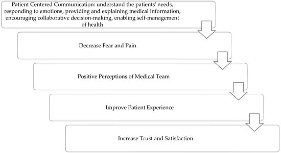 There is a strong link between PCC and patient experience [20]. Patients often experience stress, anxiety, helplessness, and uncertainty related to their health status. During situations of uncertainty, through all stages of interaction with medical staff, patients seek information and interactive, reciprocal communication that may decrease discomfort [21]. The physician’s early provision of information to the patient, in addition to nonverbal expressiveness of empathy, reduces the patient’s uncertainty and anxiety during the medical encounter [20,22]. In addition, past studies found that task-oriented behaviors such as active listening and providing detailed information during the physician–patient interaction were strongly associated with patient satisfaction [23,24]. Patients often have limited abilities to evaluate medical processes; therefore, they assess their experience and satisfaction with the care they receive based on the quality of the communication with healthcare professionals [25,26]. Research also demonstrated the strong influence of PCC on trust in the patient–physician relationship [27], which in turn increases patient satisfaction [28]. Therefore, effective, patient-centered communication acts enhance positive patient experience [26].