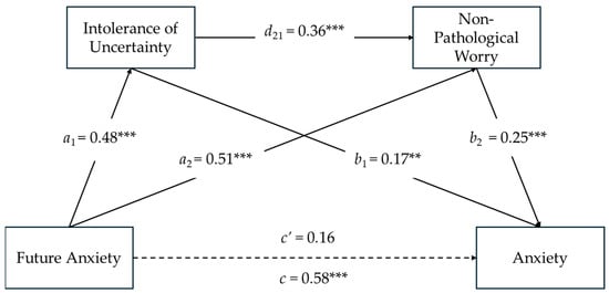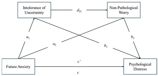 Regnoli GM, Tiano G, De Rosa B. Serial Mediation Models of Future Anxiety and Italian Young Adults Psychological Distress: The Role of Intolerance of Uncertainty and Non-Pathological Worry. European Journal of Investigation in Health, Psychology and Education. 2024; 14(6):1834-1852. https://doi.org/10.3390/ejihpe14060121