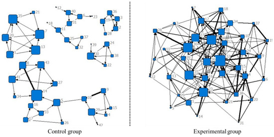 Finally, we generated network sociograms of the EG and the CG during the exposure and treatment phases. We investigated the interaction data (e.g., questioning and responding between students) in six discussion forums. Specifically, the participants’ interaction data during the exposure phase were gathered from two online forums in learning modules 1–2. Their interaction data during the treatment phase were collected from four online forums in learning modules 3–6.