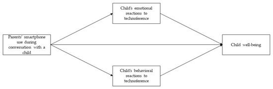 A higher frequency of parents’ smartphone use during parent–child conversation will indirectly and negatively contribute to children’s well-being via an association with different children’s emotional reactions to technology interference due to parents’ smartphone use.