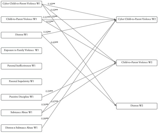 Two Wave Interaction of Substance Abuse and Distress across Cyber-CPV. Note: Cyber Child-to-Parent Violence (Cyber-CPV).