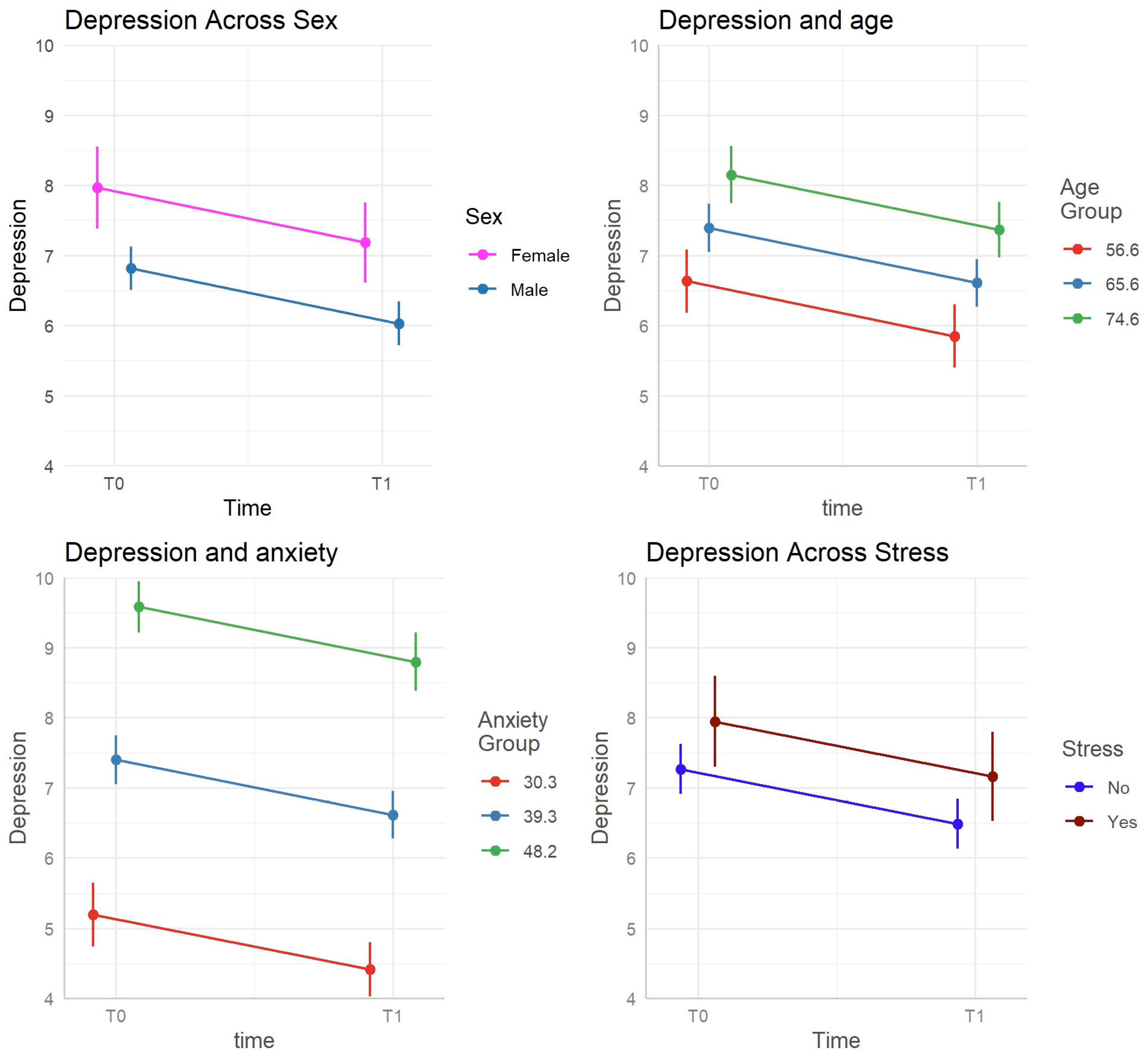 - (a1) predict the trend of anxiety from admission to discharge on the basis of psychosocial factors (age, sex, stress, and depression)