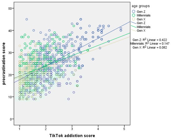 According to our results, there was a positive association between TikTok addiction score and procrastination score especially among females and Generation Z. These results indicate that, the more time is spent on TikTok, the more the users push their real-world responsibilities to the background of priorities. Generation Z is the one with the highest levels of TikTok use daily among all other generations. Furthermore, it is supported that women tend to procrastinate more than men due to a variety of reasons, such as stress, ideal standards of perfection, etc. (