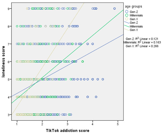 Another finding was that our sample indicated a positive association between TikTok addiction score and loneliness score. This association was more prominent among males and Generation X. Generation X finds TikTok addictive, ending up “absorbed” (