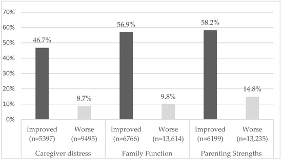 It is imperative that children’s mental health stakeholders view psychological development and wellbeing within the context of broader ecological influences, such as the family system and parental wellbeing (Bronfenbrenner, 1986; Gaspar et al., 2022; Kiani et al., 2016). The family–child influence can be described as transactional in nature, where the parent or caregiver (hereafter referred to as parent) and child impact each other simultaneously (Sameroff, 2009). The ability to measure, track, and compare the influence of agency-delivered intervention on family functioning, parenting, and caregiver distress is valuable in understanding the quality of care received.