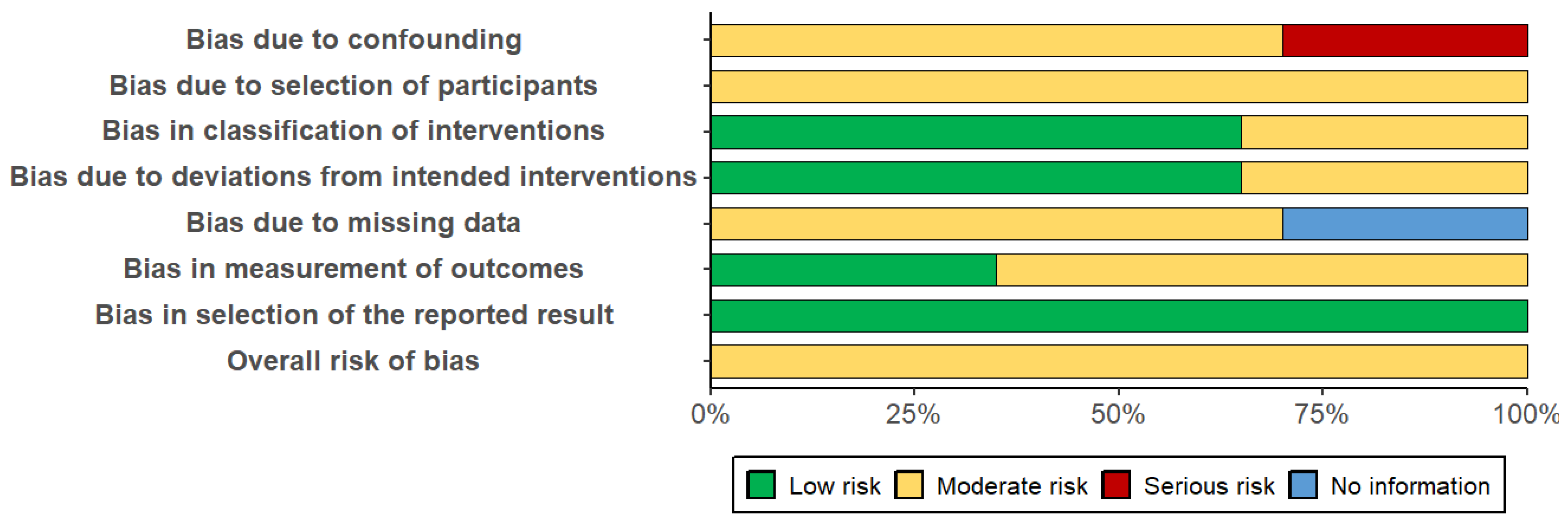 Following the comprehensive evaluation, it was concluded that the three studies presented an overall moderate risk of bias. Accordingly, their findings should be interpreted with caution, close attention to detail, and avoidance of unwarranted generalisations. However, we argue that these findings should not be disregarded, as they offer valuable insights into interventions that are seldom explored in research on MCI, particularly within the pharmacological domain.