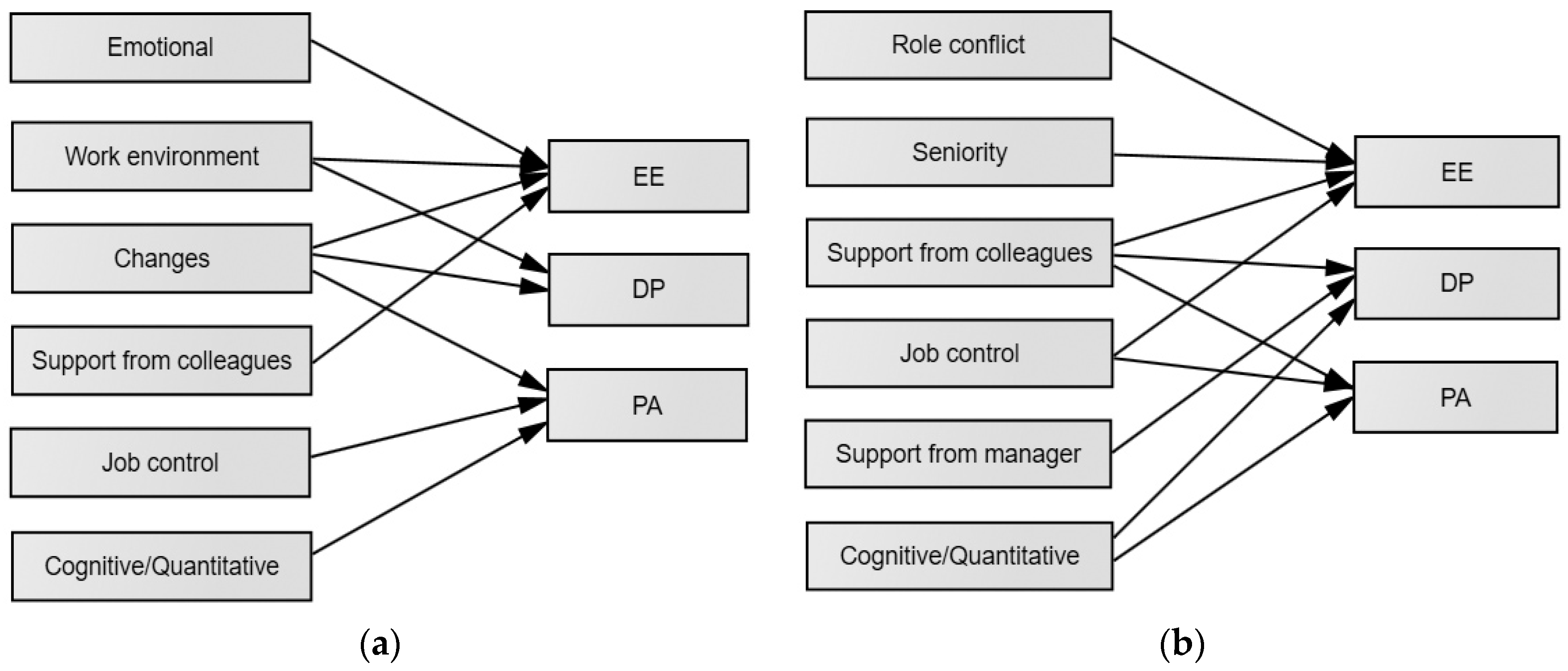 - Maslach, C., Schaufeli, W. B., & Leiter, M. P. (2001). Job burnout. Annual Review of Psychology, 52, 397–422. [Google Scholar] [CrossRef]