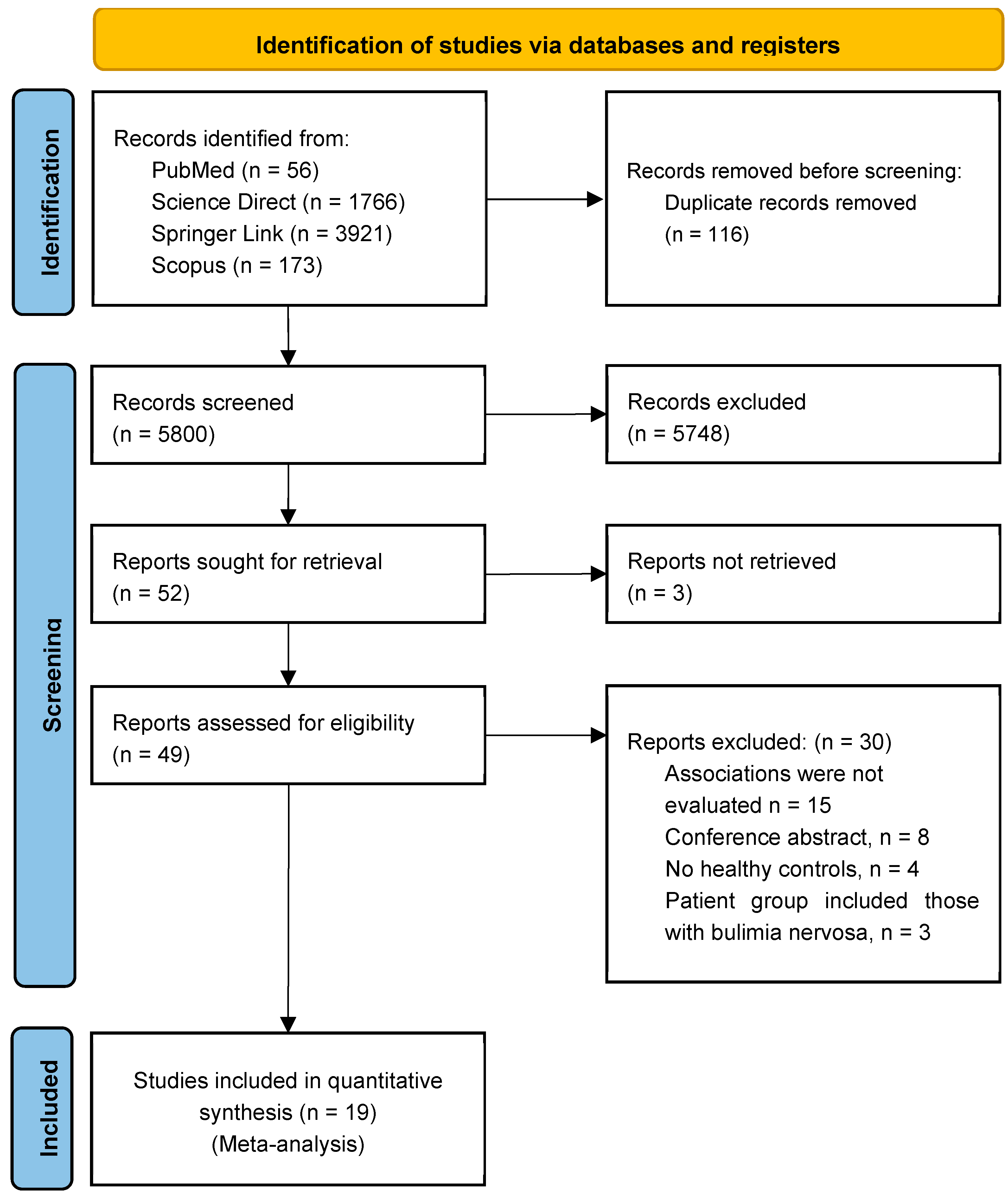 - Exposure: patients diagnosed with AN based on clinical evaluation and/or according to the diagnostic criteria outlined in the Diagnostic and Statistical Manual of Mental Disorders or the International Classification of Diseases;