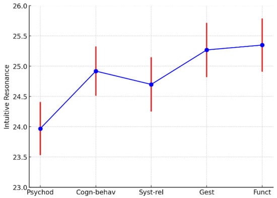 These results suggest that while Gestalt and functional therapists demonstrate greater body awareness, and Gestalt and systemic–relational therapists show higher affective empathy, intuitive resonance appears to be consistent across therapeutic models.
