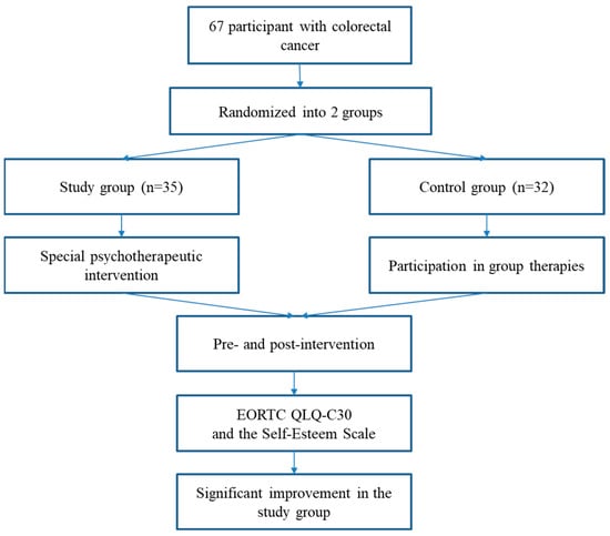 Inclusion criteria were women aged 32–66 years, diagnosed with colorectal cancer (Stage I–III), undergoing chemotherapy or combined chemotherapy and radiotherapy, with no prior professional psychotherapy experience.
