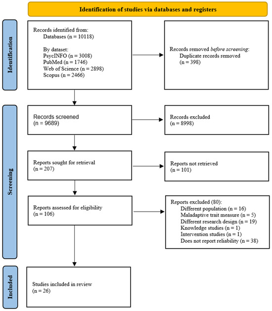 This study followed the Preferred Reporting Items for Systematic Reviews (PRISMA, Page et al., 2021) and Meta-analysis of Reliability (López-Ibáñez et al., 2024) guidelines.