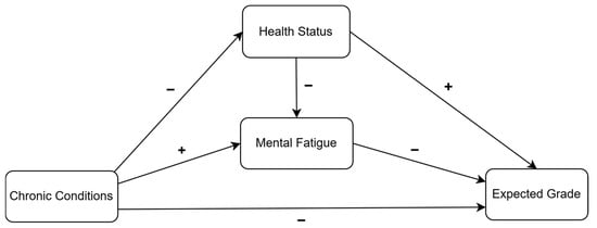 Chronic conditions indirectly impact mental fatigue and expected grade.