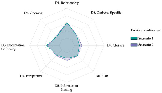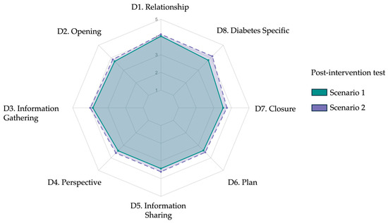 | 8.1 | Explains lab results (HbA1c) | 1.80 ± 0.71 | 1.90 ± 0.71 | 0.50 |