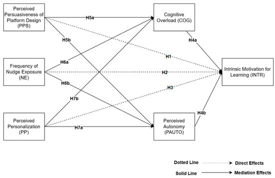 Operationally, we handle EdTech nudges as interface-level defaults and prompts presented within learning episodes (NE), not as a more general persuasive design tone (PPS), and to tailor content/feedback (PP). This is the distinction that makes it clear that the nudges are the micro-level delivery mechanism, PPS encapsulates the macro-level persuasiveness of the entire interface, and PP encapsulates the content fit with the learner. With this gap, current studies develop and test a conceptual model based on Self-Determination Theory (SDT), Cognitive Load Theory, and knowledge of Persuasive Systems Design (; ; ). The model explores how perceived platform design persuasiveness and Nudge Exposure frequency influence students’ intrinsic motivation, and psychological pressure and perceived autonomy serve as mediators between them. The research also examines the moderating effect of autonomy orientation, a trait-level characteristic that indicates the degree to which individuals are self-regulated in making their choices (; ; ).