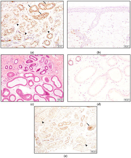 - Langbein, L.; Rogers, M.A.; Praetzel, S.; Cribier, B.; Peltre, B.; Gassler, N.; Schweizer, J. Characterization of a novel human type II epithelial keratin K1b, specifically expressed in eccrine sweat glands. J. Investig. Dermatol. 2005, 125, 428–444. [Google Scholar] [CrossRef] [PubMed]