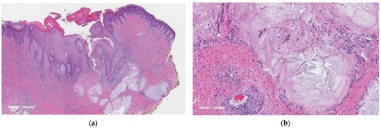 - Chaturvedi, H.T.; Chaturvedi, C.; Thammaiah, S.; Patel, V. Transepidermal elimination of suture material in lip biopsy specimen. J. Oral Maxillofac. Pathol. JOMFP 2022, 26, 392. [Google Scholar] [CrossRef]