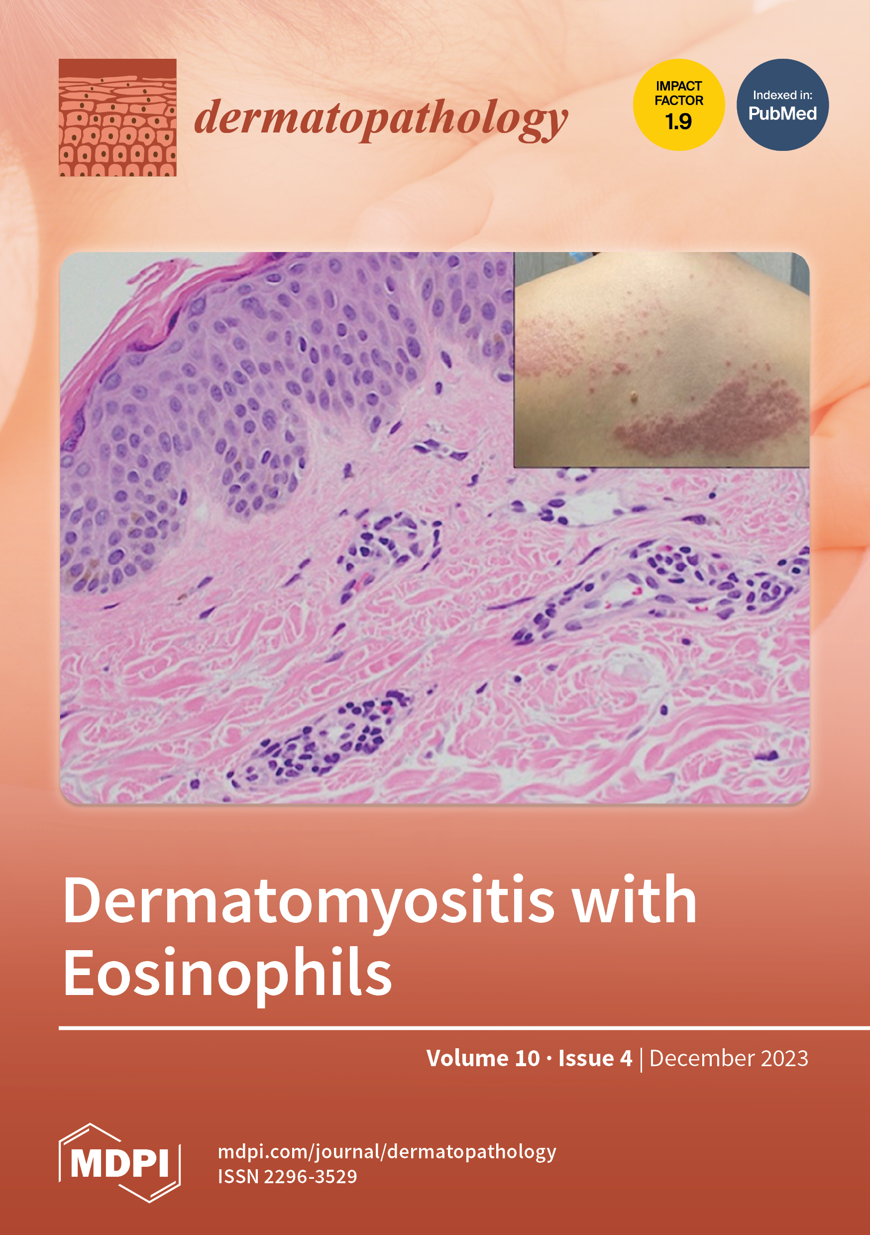 Dermatomyositis is an idiopathic inflammatory myopathy that often presents with symmetric proximal skeletal muscle weakness and characteristic skin findings. Typical skin biopsy findings include vacuolar changes of the basal layer, increased dermal m...