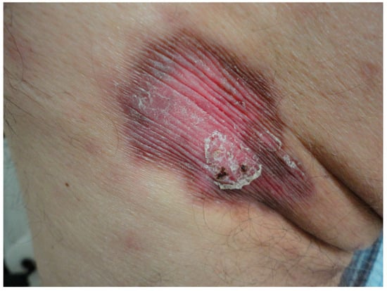 - Patel, S.; John, A.M.; Handler, M.Z.; Schwartz, R.A. Fixed Drug Eruptions: An Update, Emphasizing the Potentially Lethal Generalized Bullous Fixed Drug Eruption. Am. J. Clin. Dermatol. 2020, 21, 393–399. [Google Scholar] [CrossRef] [PubMed]