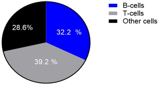 Proportion of T-cells, B-cells (including plasma cells) and other cells (including histiocytes, multinucleated giant cells, neutrophilic granulocytes) in a cake diagram.