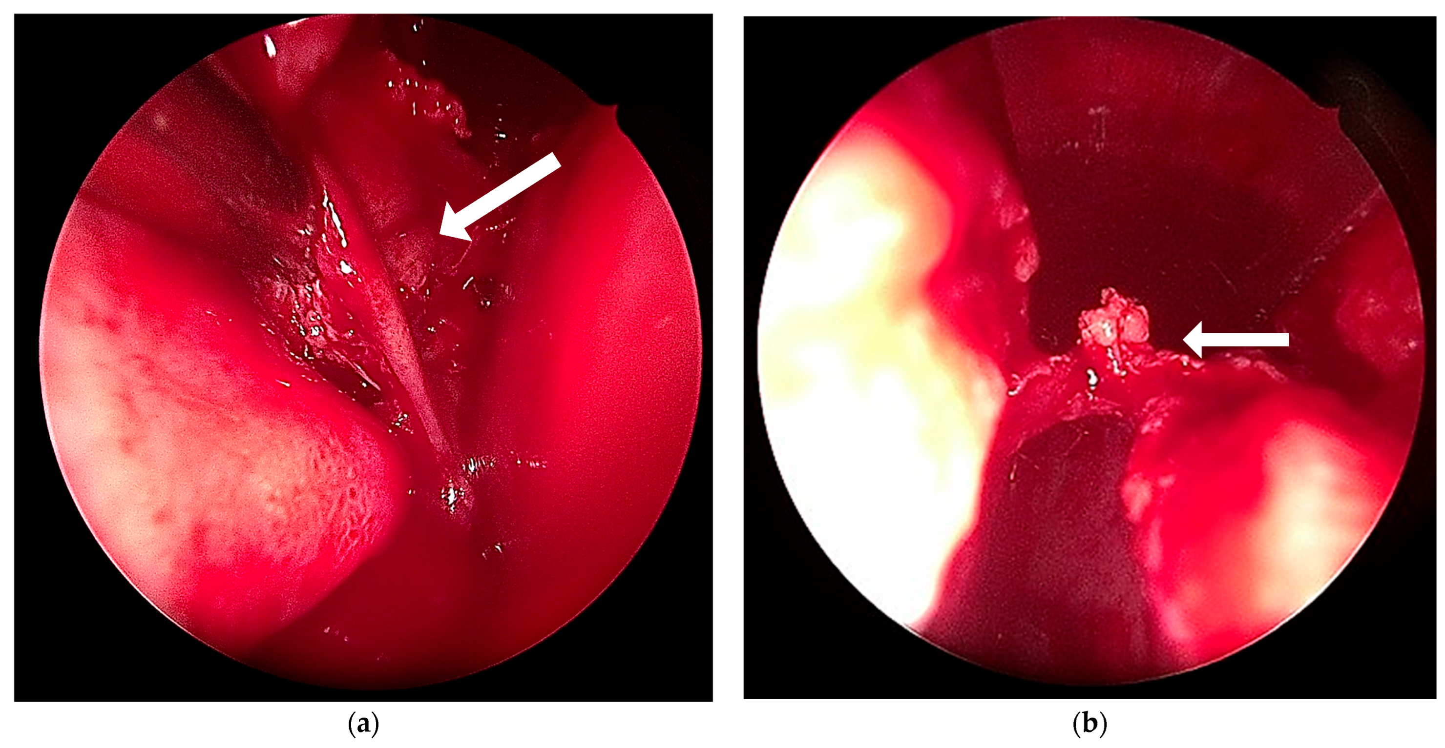 - Duarte, V.M.; Liu, Y.F.; Shapiro, N.L. Uncommon presentation of a benign nasopharyngeal mass in an adolescent: Comprehensive review of pediatric nasopharyngeal masses. Case Rep. Pediatr. 2013, 2013, 816409. [Google Scholar] [CrossRef]