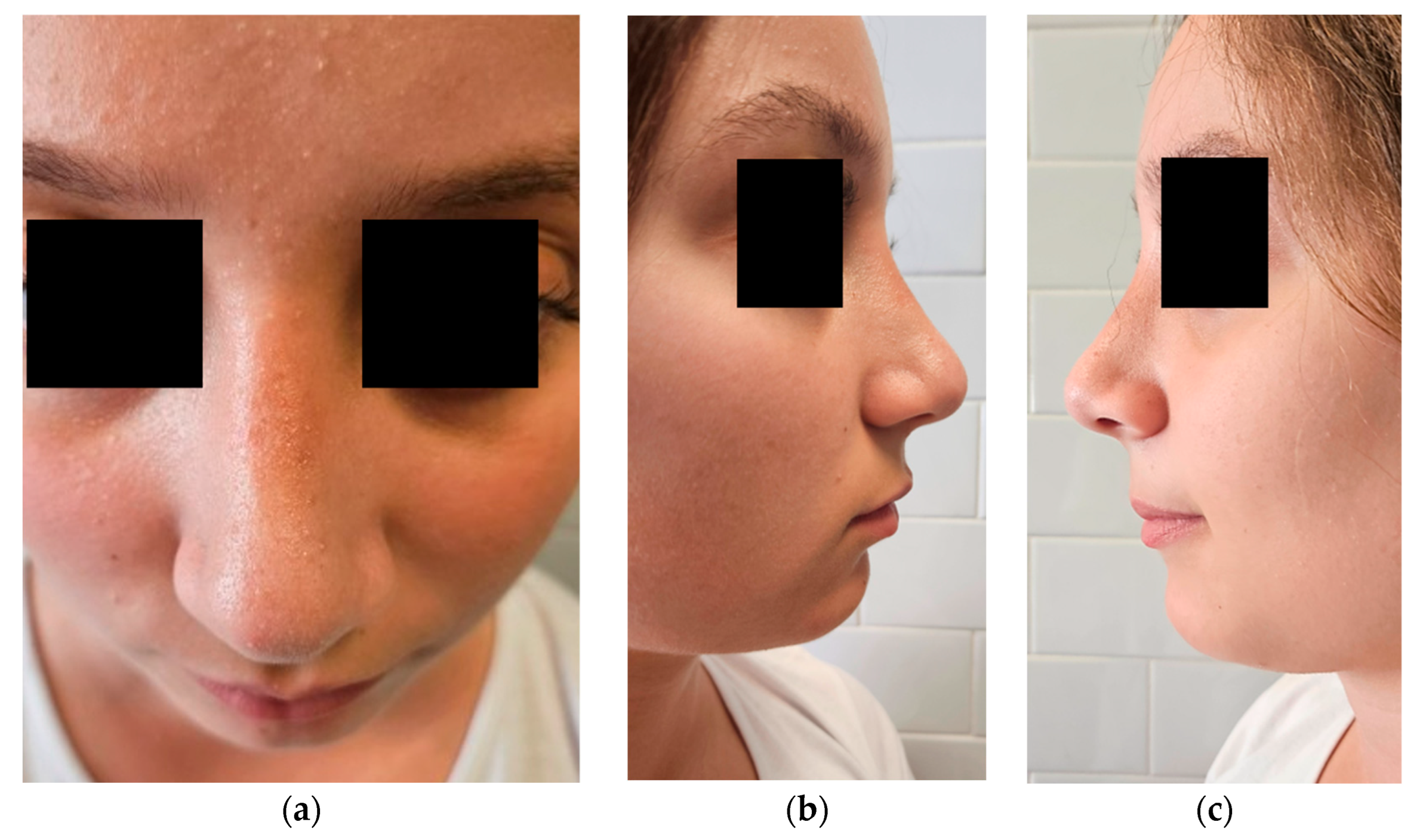- Chauhan, N.; Warner, J.P.; Adamson, P. Adolescent rhinoplasty: Challenges and psychosocial and clinical outcomes. Aesthetic Plast. Surg. 2010, 34, 510–516. [Google Scholar] [CrossRef] [PubMed]
