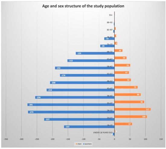 The average age of the participants was 43.7 (95% confidence interval (CI): 43.2–44.3) years. Figure 7 presents participant distribution by age and sex enrolled in the social educational LFF program.