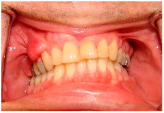 19. Kubota, S.; Imai, T.; Iwai, S.; Nakazawa, M.; Uzawa, N. Gingival Neurofibroma with Teardrop-Shaped Defects of the Interdental Alveolar Bone: An Unusual Oral Manifestation of Neurofibromatosis Type 1. J. Craniofac. Surg. 2019, 30, e205–e207. [Google Scholar] [CrossRef]