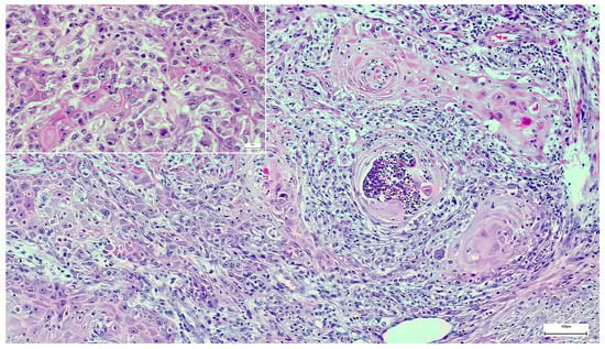 - Pool, S.E.; Manieei, F.; Clark, W.H., Jr.; Harrist, T.J. Dermal squamo-melanocytic tumor: A unique biphenotypic neoplasm of uncertain biological potential. Hum. Pathol. 1999, 30, 525–529. [Google Scholar] [CrossRef]