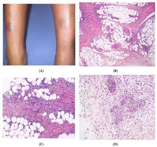 - Moraes, A.J.; Soares, P.M.; Zapata, A.L.; Lotito, A.P.; Sallum, A.M.; Silva, C.A. Panniculitis in childhood and adolescence. Pediatr. Int. 2006, 48, 48–53. [Google Scholar] [CrossRef] [PubMed]