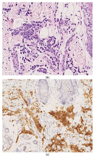 - Dupeux, M.; Boccara, O.; Frassati-Biaggi, A.; Hélias-Rodzewicz, Z.; Leclerc-Mercier, S.; Bodemer, C.; Molina, T.J.; Emile, J.F.; Fraitag, S. Langerhans Cell Histiocytoma: A Benign Histiocytic Neoplasm of Diverse Lines of Terminal Differentiation. Am. J. Dermatopathol. 2019, 41, 29–36. [Google Scholar] [CrossRef]