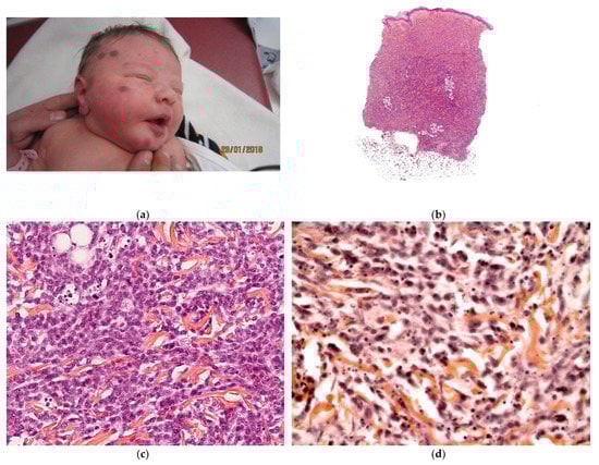 newborn; blueberry muffin rash; dermal erythropoiesis; leukemia cutis; metastatic neuroblastoma; metastatic rhabdomyosarcoma; metastatic rhabdoid tumor; Langerhans cell histiocytosis; multiple juvenile xanthogranuloma; infantile myofibromatosis; subcutaneous fat necrosis of the newborn; mastocytosis; multiple neonatal hemangiomatosis; lymphangioendotheliomatosis with thrombocytopenia; blue rubber bleb nevus syndrome; glomuveinous malformation 1. Introduction
